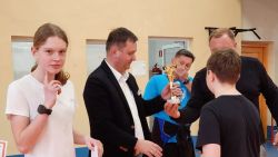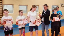W ostatniej klasyfikacji, czyli zespołów mieszanych, bez niespodzianek… pierwsze miejsce VIb, drugie VIa i trzecie VIc. Organizacją zawodów zajęli się panowie Zygmunt Mikuśkiewicz, Waldemar Leszczyński i Sebastian Konieczny. Dyplomy i puchar wręczył Pan dyrektor Piotr Lechowicz. (foto: Waldemar Leszczyński).