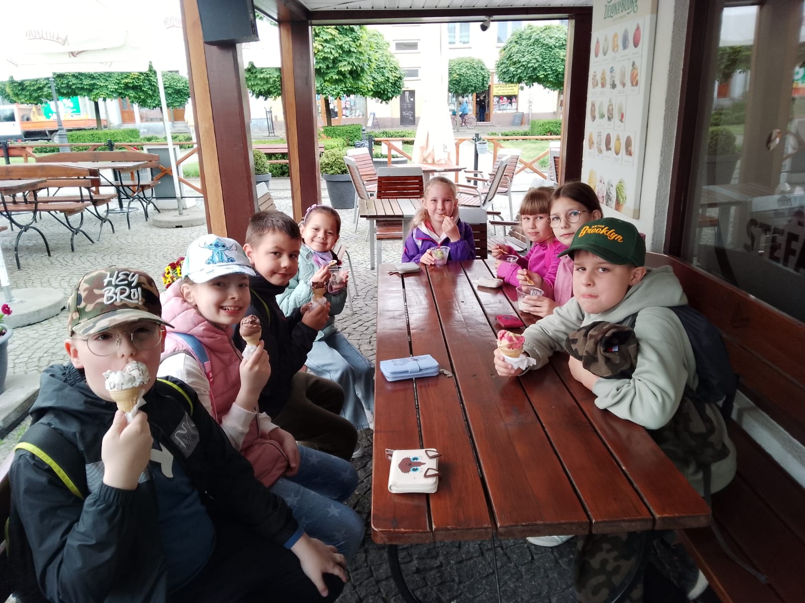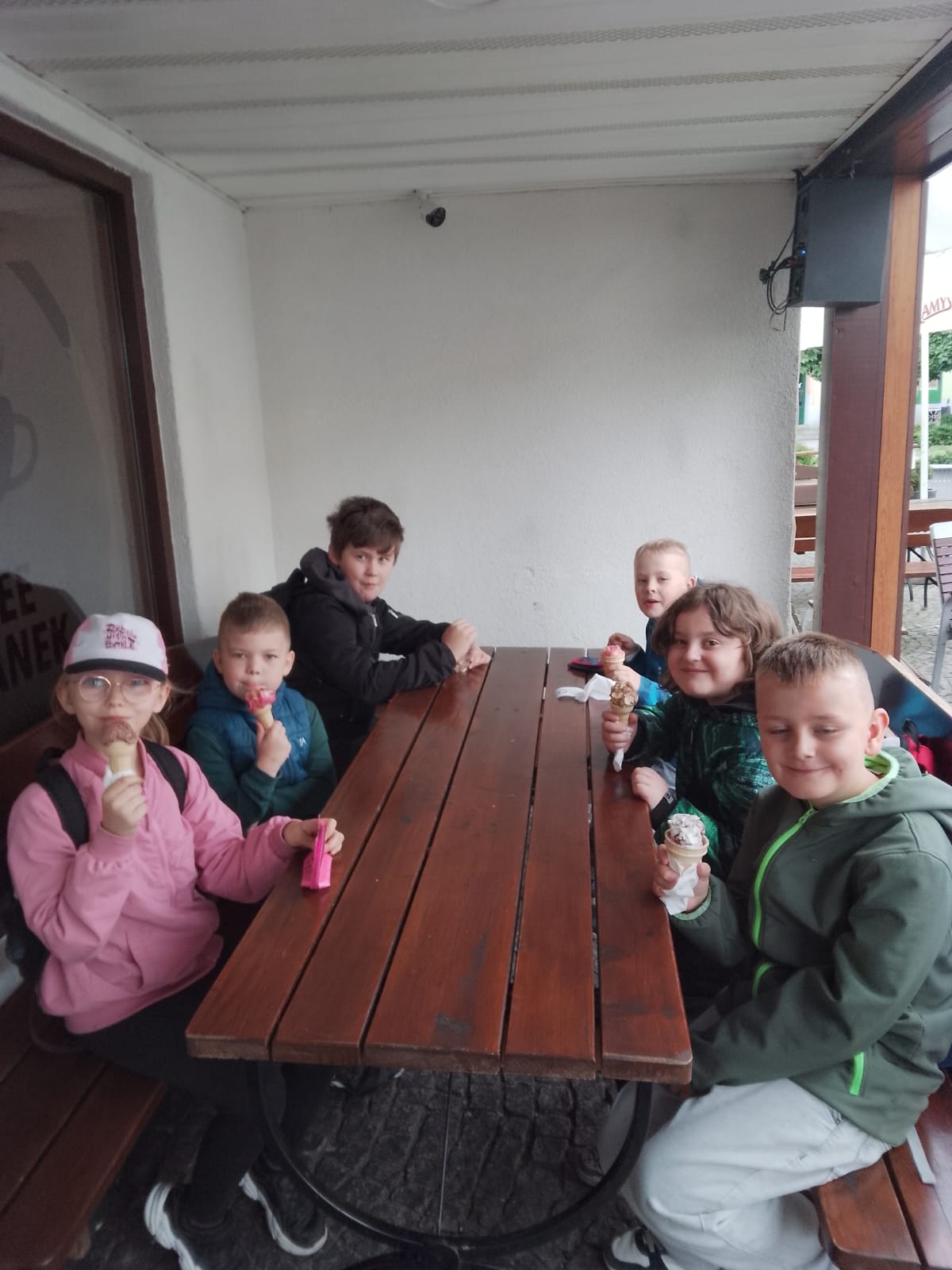 Pomimo deszczowej pogody dzisiejszy dzień uznajemy za udany. Odwiedziliśmy Izbę Regionalną, po której oprowadzili nas pani Justyna i pan Arkadiusz, opowiadając wiele ciekawych historii i przenosząc w dawne czasy. Izbę opuściliśmy z uśmiechem na twarzy i pamiątkową monetą, z którą podążyliśmy na pyszne lody. Dziś udowodniliśmy, że nie ma złej pogody na bycie razem.