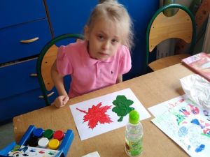 15 września uczniowie klasy Ic zamienili się w małych artystów i poza Sprzątaniem Świata obchodzili także Dzień Kropki. Międzynarodowy Dzień Kropki został ustanowiony w 2008 roku i aktualnie jest obchodzony w 196 krajach. Jego głównym przesłaniem jest to, że każdy z nas, bez względu na wiek, ma jakiś talent. Dzień Kropki ma zachęcić do jego odkrywania oraz dodać odwagi, by pokazywać go światu. My w ramach rozwoju swej kreatywności kropkowaliśmy za pomocą patyczków higienicznych i farb liście oraz wylepialiśmy plastelinowymi kuleczkami literkę A.