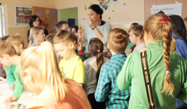 Warsztaty prowadziła p. Aleksandra Głowacka przy pomocy nauczycieli klas I-III. W ciekawy sposób przekazała wiele fascynujących informacji naszym maluchom. Dzieciaki miały także okazję do oglądania owadów pod mikroskopem oraz podziwiania wystawy na naszym szkolnym holu. Dzieci uczestniczyły również w dodatkowych działaniach w klasach m.in.: