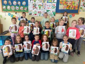 Zakończyliśmy dzisiejszy kiermasz słodkości. Wypieki wyglądały smakowicie. Wszystkie łakocie rozeszły się w mgnieniu oka! Uzbieraliśmy kwotę 1508 zł. Za te pieniążki zostanie zakupione jedzonko dla jeży, które są pod opieką Pani Basi „Wierzę w jeże”. Dziękujemy wszystkim uczniom, którzy upiekli pyszności oraz wszystkim tym, którzy je kupili. Dzieci z młodszej grupy wiekowej zrealizowały temat o jeżach oraz wykonały piękne prace plastyczne. A już niedługo czeka nas prawdziwa lekcja o jeżach, przygotowana przez panią Basię.