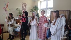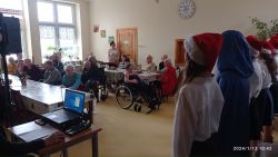 Po przedstawieniu uczniowie odprowadzili mieszkańców do pokoi i odwiedzili pozostałych, którzy ze względu na stan zdrowia nie mogli zejść do świetlicy.