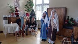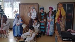 Dziś, 12 stycznia 2024 r. odwiedziliśmy DOM POMOCY SPOŁECZNEJ „Promyk” w Kamiennej, aby zaprezentować JASEŁKA BOŻONARODZENIOWE przygotowane przez uczniów naszej szkoły pod kierownictwem p. Iwony Szymków – Miś.