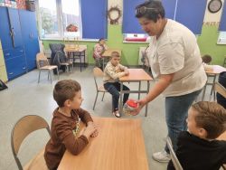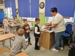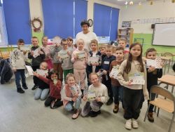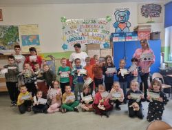 W ramach wsparcia i podziękowań za to cudowne spotkanie, dzieci przyniosły ręczniki papierowe, które są bardzo potrzebne do codziennej pielęgnacji i karmę dla jeżyków. W zamian dzieci otrzymały przeróżne prezenty przygotowane przez samą prowadzącą. To była bardzo miła lekcja.