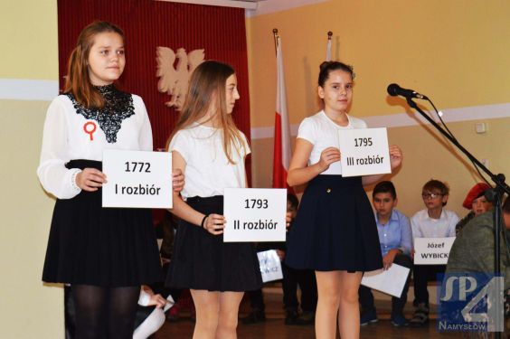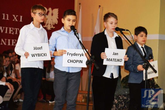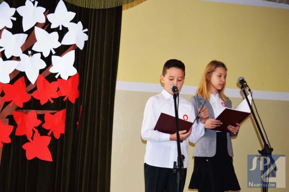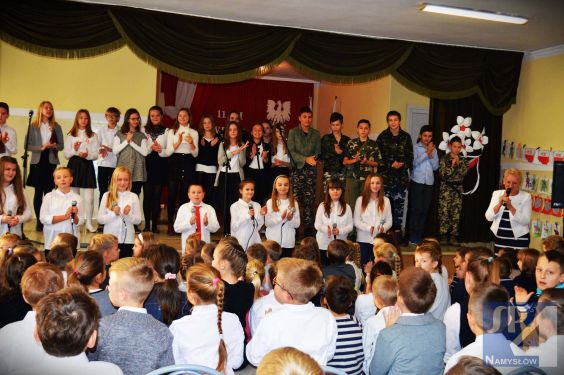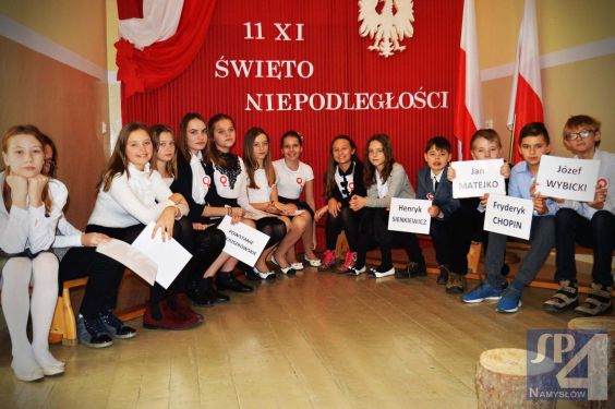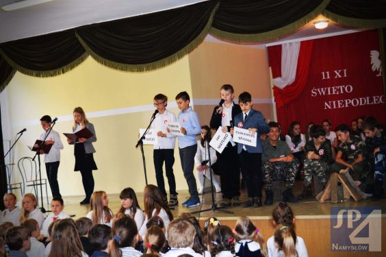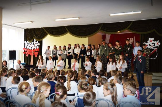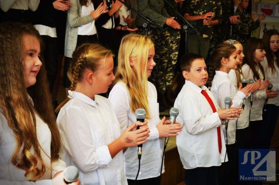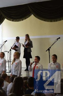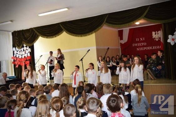 10 listopada 2016 r. w Szkole Podstawowej Nr 4 z Oddziałami Integracyjnymi w Namysłowie odbyła się uroczysta akademia z okazji 98 Rocznicy Odzyskania Niepodległości przez Polskę. Wszyscy uczniowie szkoły oraz zaproszeni goście, wśród których znalazła się bardzo liczna dziatwa przedszkolna wraz ze swoimi opiekunami, wysłuchali interesujących wiadomości, wierszy związanych z tym ważnym wydarzeniem z historii naszej Ojczyzny. Na scenie swoje umiejętności zaprezentowali uczniowie klas 5-tych i 6 -tych. Montaż literacki był przeplatany pieśniami patriotycznymi w wykonaniu szkolnego zespołu wokalnego GAMA („Żeby Polska była Polską”, ”Warszawianka”, „Marsz Pierwszej Brygady”, „Szara piechota”, „Pierwsza kadrowa”) prowadzonego pod kierunkiem Kazimierza Fiały. Piękne dekoracje przygotowały panie ze świetlicy szkolnej: Małgorzata Łopion, Joanna Sokołowska, Barbara Grudzińska i Paulina Bober. Nad stroną techniczną, jak zwykle, czuwał pan Eugeniusz Miś. Głównym organizatorem i reżyserem tej uroczystości była pani Ilona Górecka. Wszystkim młodym artystom, którzy zaprezentowali się w tej pięknej lekcji historii – w imieniu młodej publiczności i nauczycieli szkoły – należą się słowa wielkiego podziękowania – DZIĘKUJEMY.