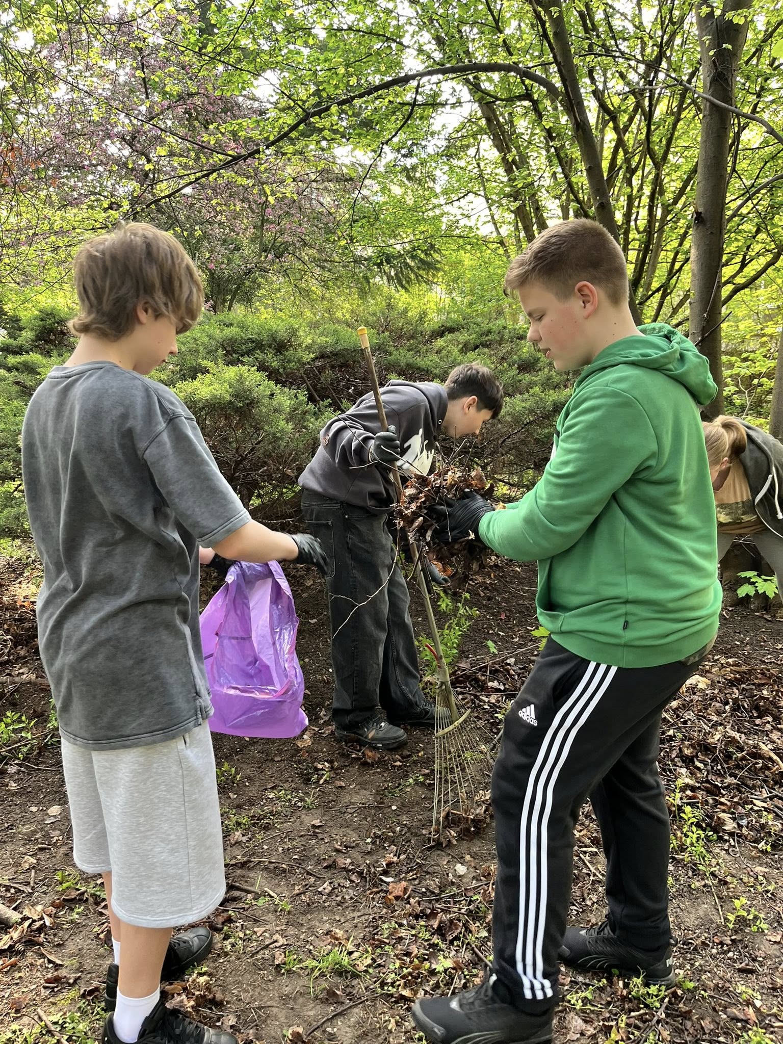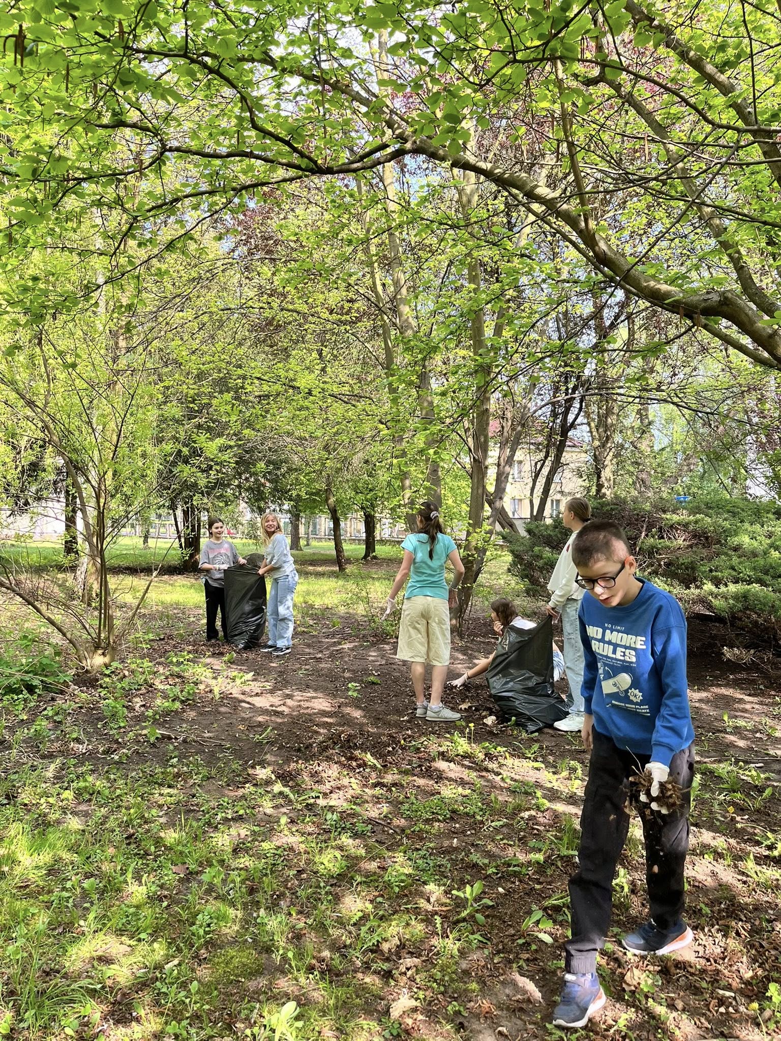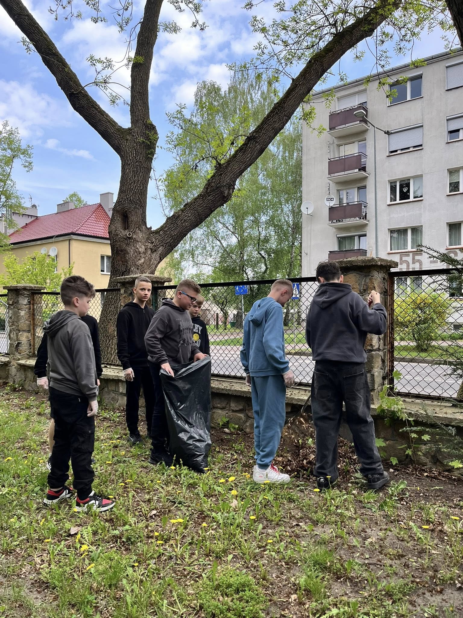 23 kwietnia 2025 r. uczniowie klas 7b, 7c, 5a oraz 6b, wspólnie z p. Katarzyną Fiałą, wzięli udział w akcji – pt. „Pielęgnacja terenów zielonych wokół szkoły” z okazji Dnia Ziemi.