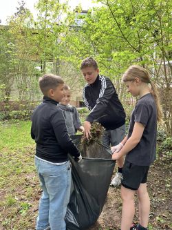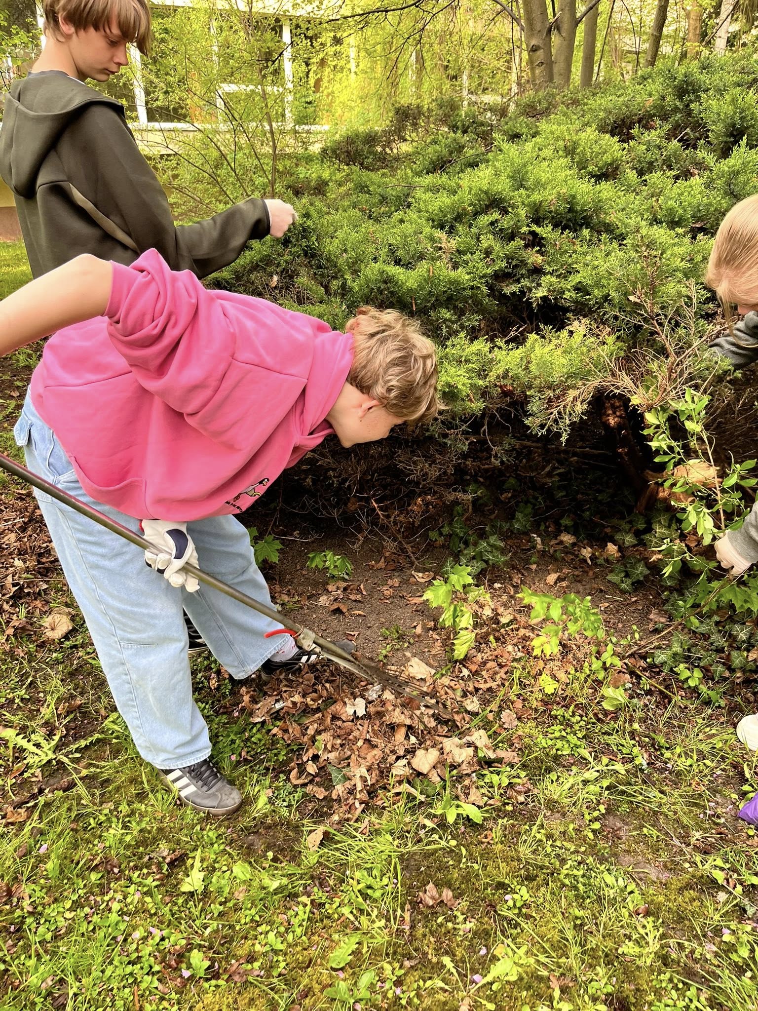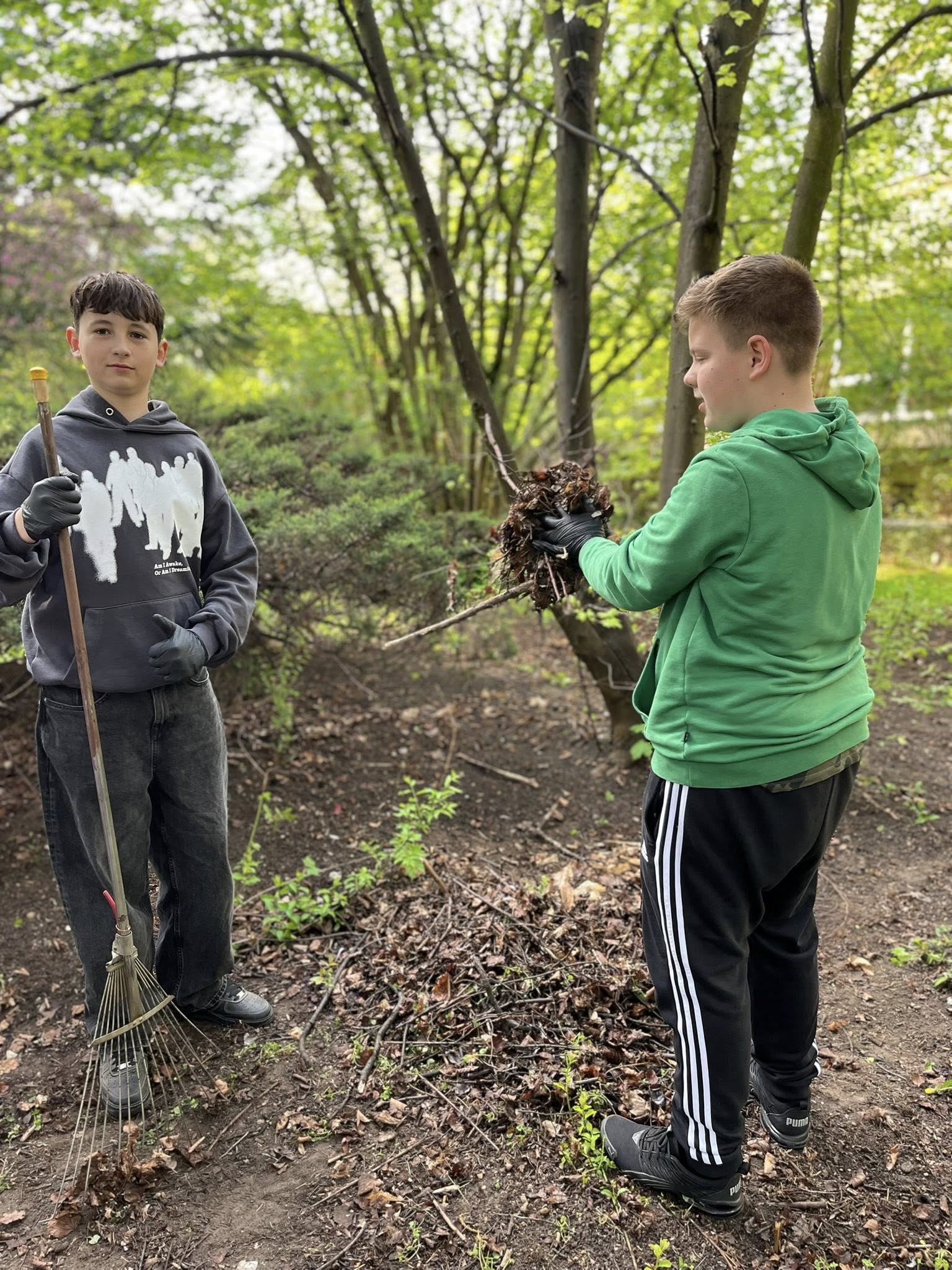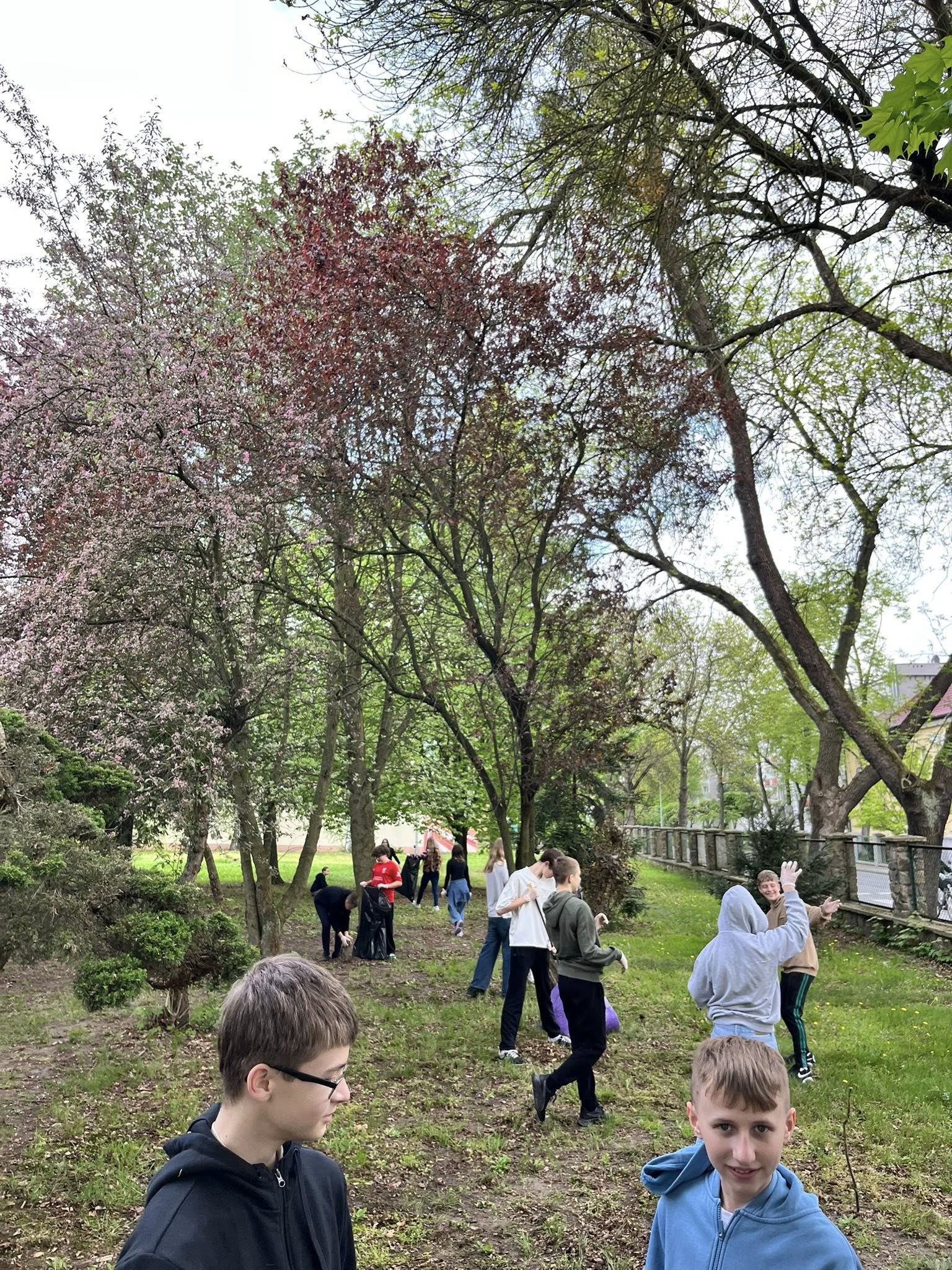 23 kwietnia 2025 r. uczniowie klas 7b, 7c, 5a oraz 6b, wspólnie z p. Katarzyną Fiałą, wzięli udział w akcji – pt. „Pielęgnacja terenów zielonych wokół szkoły” z okazji Dnia Ziemi.