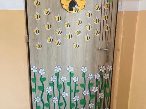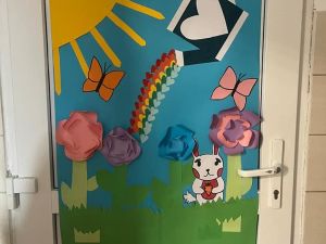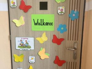 W konkursie na wiosenną dekoracje drzwi I miejsce zajęła klasa 5b, II miejsce klasa 5c, III miejsce klasa 6c i 5a.