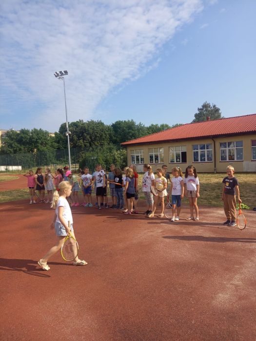 W poniedziałek 19 czerwca odbyły się w naszej szkole lekcje pokazowe tenisa ziemnego. Celem tych zajęć było zaciekawienie uczniów tym sportem, który nie tylko poprawia sprawność i kondycję, ale przede wszystkim daję mnóstwo radości, przyjemności i frajdy ze wspólnego przebywania na świeżym powietrzu. Zapraszamy do fotorelacji.