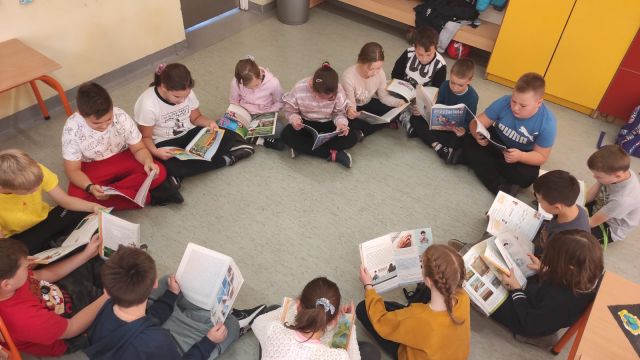22 października nasza szkoła przystąpiła do II MIĘDZYNARODOWEJ EDYCJI VI OGÓLNOPOLSKIEJ AKCJI „PRZERWA NA CZYTANIE – BICIE REKORDU W CZYTANIU NA PRZERWIE”. Akcja ta realizowana jest w ramach Międzynarodowego Miesiąca Bibliotek Szkolnych oraz kampanii społecznej „Cała Polska czyta dzieciom”, a jej organizatorem jest Biblioteka Pedagogiczna Wojewódzkiego Ośrodka Metodycznego w Gorzowie Wielkopolskim. Wszyscy uczniowie oraz nauczyciele naszej szkoły uczestniczyli w tym przedsięwzięciu realizowanym w klasach, na korytarzu szkolnym oraz bibliotece. Najmłodszym uczniom w naszej szkole bajki czytali pani i pani dyrektor. Udział w akcji wzięli prawie wszyscy uczniowie obecni w tym dniu w szkole oraz nauczyciele i pracownicy szkoły. Celem akcji jest promocja czytelnictwa, zwrócenie uwagi na czytanie jako atrakcyjną formę spędzania czasu w szkole oraz zachęcenie wszystkich do sięgania po książkę w każdej sytuacji i każdym miejscu. Dziękujemy wszystkim za rzetelność i prawdziwe zaangażowanie w tą piękną międzynarodową akcję czytelniczą.