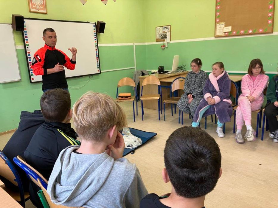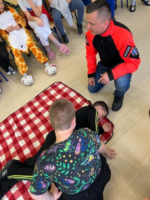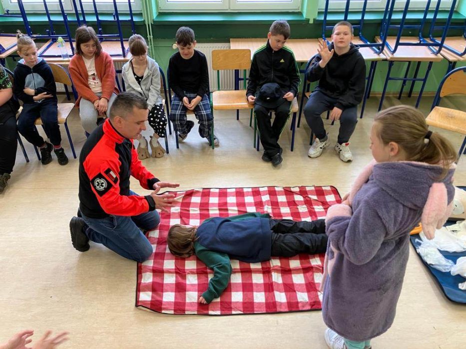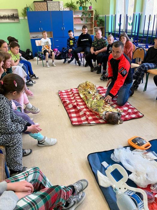 Dzisiaj tj. 19 maja w klasie IVa odbyły się zajęcia edukacyjne dotyczące udzielania pierwszej pomocy przedmedycznej. Spotkanie miało na celu kształtowanie pozytywnych i bezpiecznych postaw oraz zapoznanie dzieci z podstawowym udzieleniem pomocy poszkodowanemu podczas różnych zdarzeń. Poznały pracę ratownika medycznego.