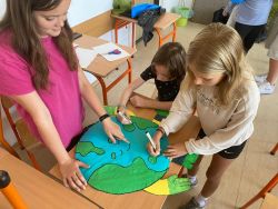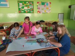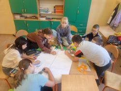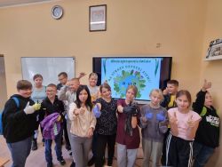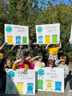 Uczniowie klas młodszych zapoznali się z filmami edukacyjnymi na temat ekologii, następnie wykonali przepiękne, kolorowe plakaty, ukazujące w jaki sposób należy segregować odpady oraz nauczyli się piosenki o planecie Ziemia.