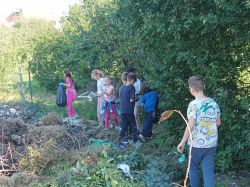 Klasy starsze wykonały dekorację drzwi i następnie z całą szkołą, udały się na sprzątanie okolicy.