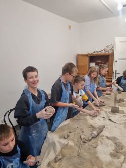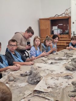 Dzieci odkrywały tajniki ceramiki, tworząc piękne naczynia na kole garncarskim pod okiem instruktora i mistrza, pana Pawła Wierzbickiego.