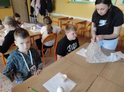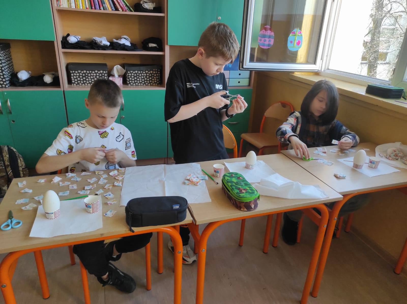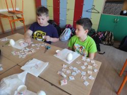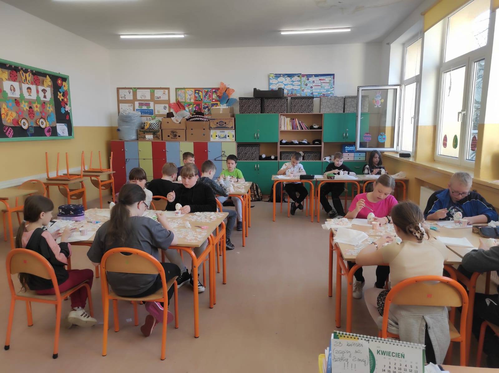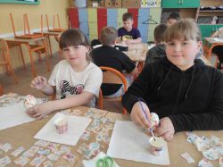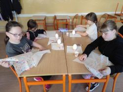 Dzisiaj w klasie III a odbyły się świąteczne warsztaty plastyczno – techniczne. Dzieci ozdabiały kawałkami kolorowych serwetek , duże gęsie wydmuszki. Potrzebowały do tego tylko: wydmuszki, kolorej serwetki, płynnego kleju i pędzelka. Uczniowie byli zachwyceni techniką ozdabiania wydmuszek. Efekty są wspaniałe, powstały piękne pisanki.