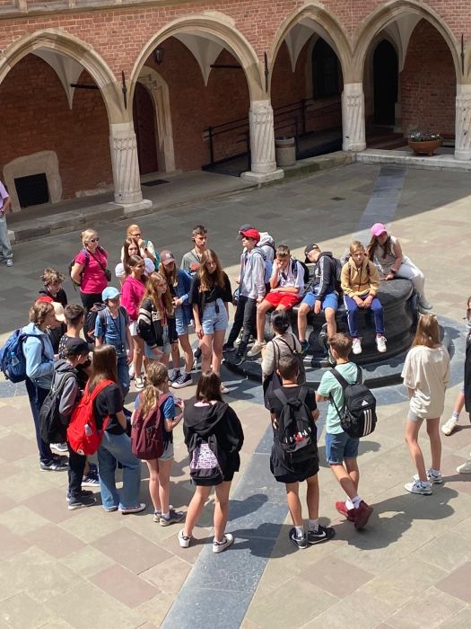 W ostatnim dniu zwiedzaliśmy Kraków. Pierwszym punktem zwiedzania był rynek krakowski, gdzie dokładnie o godzinie 12:00 wysłuchaliśmy hejnału z wieży Kościoła Mariackiego. Następnie udaliśmy się na Wzgórze Wawelskie gdzie zwiedzaliśmy Zamek Królewski i podziemia Katedry Wawelskiej i wchodziliśmy na wieżę z dzwonem Zygmunta.