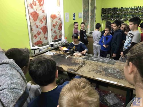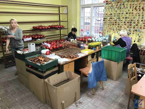Święta tuż, tuż… a klasy: Vb i Vc wraz z wychowawcami wybrały się 08.12.16 r. na warsztaty edukacyjne do Krośnic. Celem naszej wycieczki było obejrzenie całego procesu technologicznego powstawania bombek choinkowych. Tworzenie bombek odbywa się wieloetapowo. Początkowo podgrzewa się szkło nad palnikiem tlenowym do temperatury 1000 st. Celsjusza, aby stało się plastyczne i można je dowolnie formować. Na naszych oczach powstawały łabędzie, dinozaury, a także inne zwierzęta. W ten sam sposób można również uzyskać gwiazdki, samochodziki i mikołajki, ale odbywa się to w zamkniętej formówce. Utworzone szklane struktury zostały posrebrzane w kolejnym pomieszczeniu. Odbywa się to za sprawą azotanu srebra, który od wewnątrz tworzy lustrzaną warstwę. Chociaż wygląda to tak, jakby warstwa srebra była na zewnątrz. Ostatnim etapem tego procesu jest dekorowanie. Widzieliśmy tam ogromną różnorodność kolorów i pomysłowość plastyczną ogromnej ilości bombek. Zachwycały swoją niepowtarzalnością i odmiennością. Szczególnie zachwycały nas bajkowe postacie: Bolek i Lolek, Gargamel i smurfy, Reksio a także Minionki.