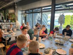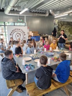Podczas zwiedzania dzieci miały okazję poznać tajniki tradycyjnej produkcji ceramiki, a następnie same spróbowały swoich sił na warsztatach, tworząc własne, unikatowe dzieła. To była prawdziwa przygoda z gliną i farbami!